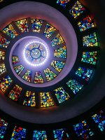 Scenic park with a Norman Rockwell mosaic and spiral-shaped interfaith chapel