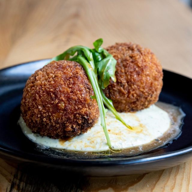 We’ll start at The Rustic. This laid-back kitchen and bar specializes in locally sourced drinks and food. Try their hearty Cactus Fries and Wild Boar meatballs, but don’t fill up because this is just your first stop.
