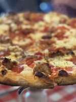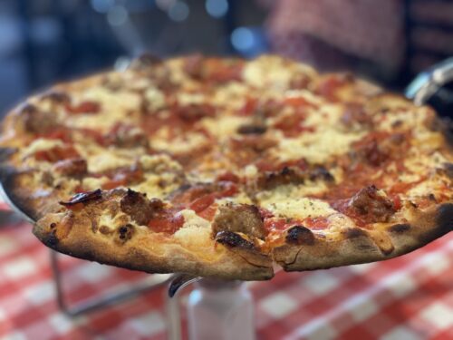NYC-style pizza cooked in a coal-fired oven with NYC water