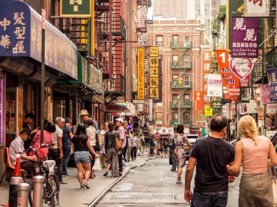 Finally, stroll over to Chinatown, right next door yet a completely different cultural experience. Be dazzled by the variety of Chinese shops and signs on display as you learn about this immigrant community. Our tour ends in the former Five Points, now Columbus Park, infamous in the 19th century as one of the city’s most dangerous areas.