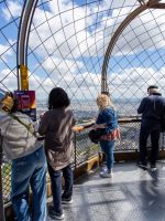 Begin at the esplanade where you can view the tower from below while queuing for the elevator. Then you’ll zip up to the second floor in a glass-enclosed elevator.